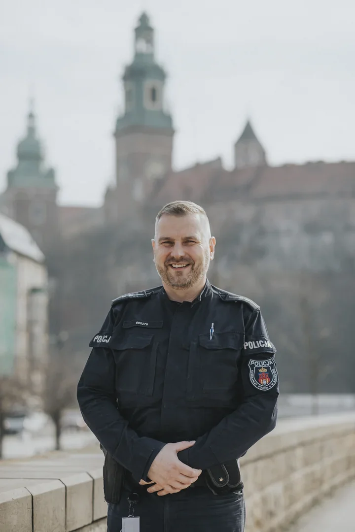 “Asp. Jacek Olesiński od 6 lat jest dzielnicowym w Komisariacie Policji V w Krakowie.”