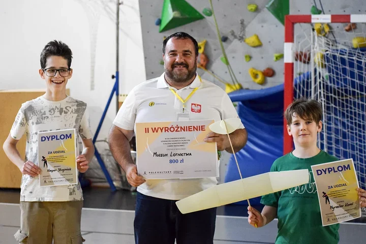 Modelarnia Muzeum Lotnictwa na podium - II wyróżnienie podczas zawodów szybowców halowych w Niepołomicach