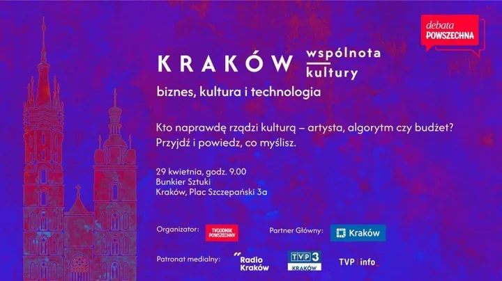 W Krakowie znów spotkają się ludzie z bardzo różnych światów – od instytucji kultury, przez samorząd, po biznes i nowe technologie. 29 kwietnia w Bunkrze Sztuki wraca debata „Kraków – wspólnota kultury”, a jej tegoroczny temat brzmi szczególnie aktualnie: kto dziś naprawdę współtworzy kulturę, na jakich zasadach i z jakim rachunkiem na końcu. To nie będzie rozmowa wyłącznie o sztuce. Raczej o tym, jak kultura, rynek i algorytmy coraz mocniej splatają się w jedno miejskie doświadczenie.