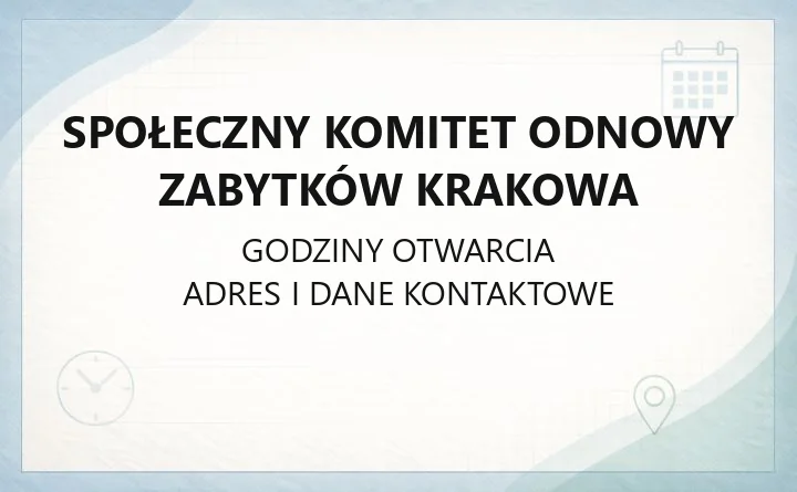 Społeczny Komitet Odnowy Zabytków Krakowa - kontakt, godziny, informacje
