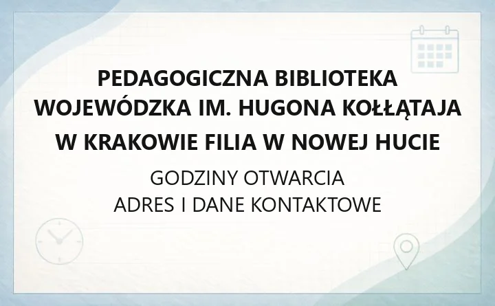 Pedagogiczna Biblioteka Wojewódzka im. Hugona Kołłątaja w Krakowie Filia w Nowej Hucie - kontakt, godziny, informacje