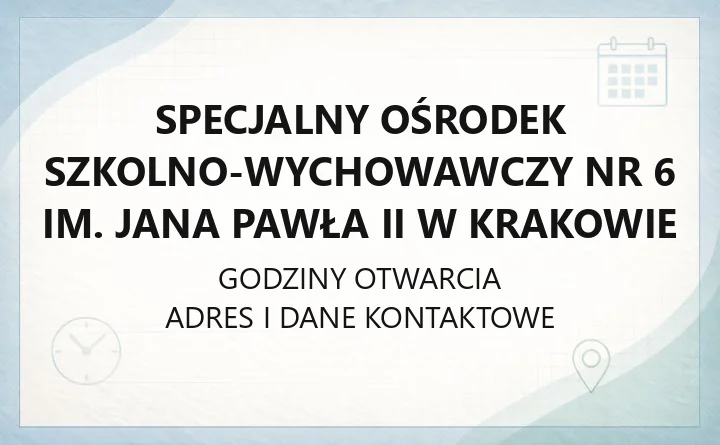 Specjalny Ośrodek Szkolno - Wychowawczy nr 6 im. Jana Pawła II w Krakowie - kontakt, godziny, informacje