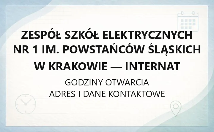Zespół Szkół Elektrycznych nr 1 im. Powstańców Śląskich w Krakowie - Internat - kontakt, godziny, informacje
