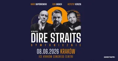 Wiosną 2026 projekt Dire Straits Symfonicznie zagości m.in. w Krakowie — na scenie pojawią się trzy rozpoznawalne osobowości polskiej sceny: Kuba Badach (wokal), Marek Napiórkowski (gitara) oraz Krzysztof Herdzin (autorskie opracowania orkiestrowe). Towarzyszyć im będzie pełna orkiestra symfoniczna i znakomici polscy muzycy.