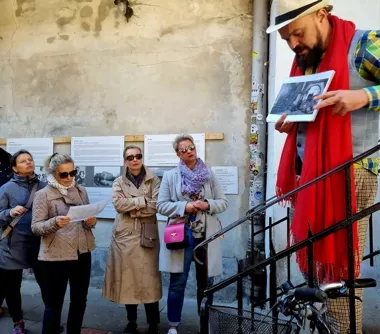 W pierwszej części uczestnicy przejdą przez Kazimierz — dawną dzielnicę żydowską, dziś znaną jako tętniące życiem centrum kulturalne i nocne miasta. Przewodnik poruszy zarówno wątki związane z współczesnym życiem tej części Krakowa, jak i wyjaśni historyczne tło miejsc, które odwiedzimy.