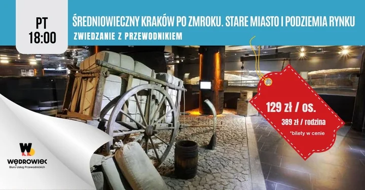 To dobra propozycja dla osób, które lubią zwiedzanie z historią w tle, ale bez pośpiechu i w bardziej kameralnej atmosferze. Wieczorny Kraków ma swój własny rytm, a zejście pod Rynek dodaje całej trasie odrobiny tajemnicy